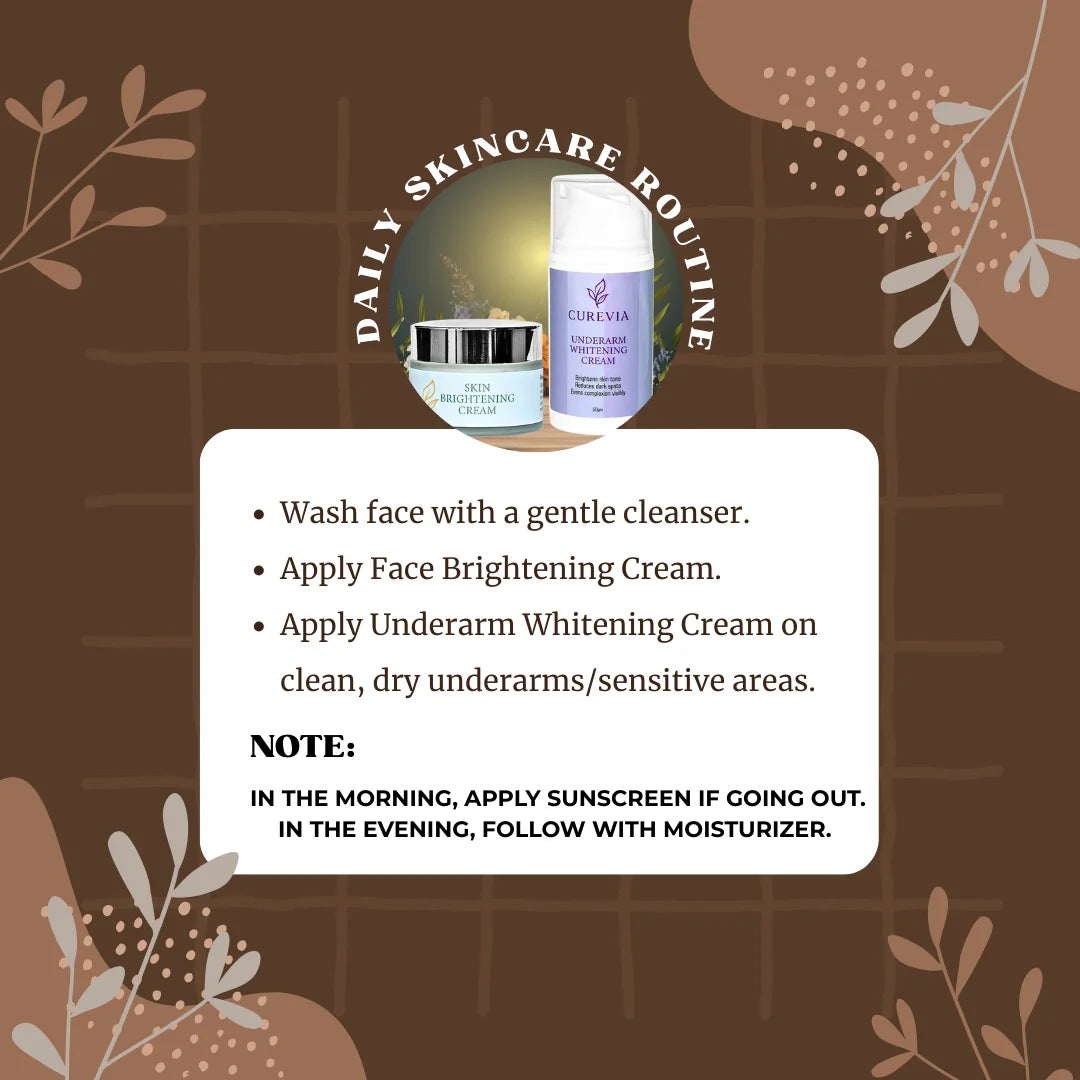 A complete brightening set for face and sensitive areas. The face cream targets dark spots and dullness, while the underarm cream is dermatologist-tested for safe use on underarms and other sensitive areas helping you feel fresh, even-toned, and confident every day.