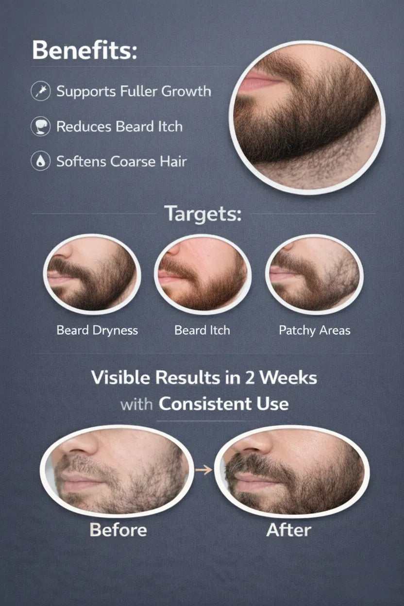 ⢠3ā4 Weeks: Improved beard strength & fuller appearance