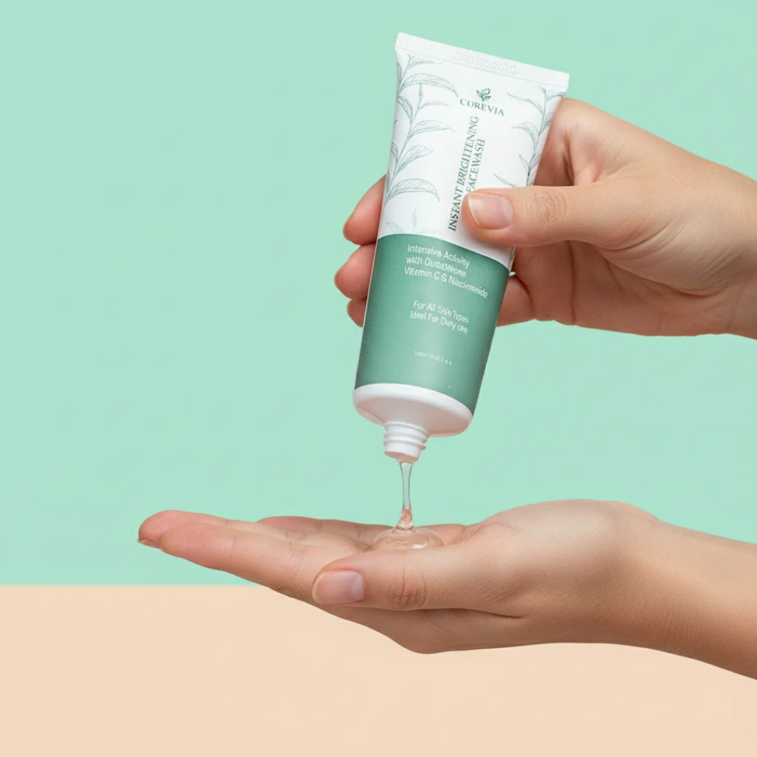 Curevia’s Instant Brightening Facewash gently removes impurities, excess oil, and dullness, leaving your skin refreshed and radiant. Paired with our Tinted Sunblock, it shields against harmful UV rays while evening out skin tone. Together, they deliver a clean, glowing, and well-protected complexion throughout the day.